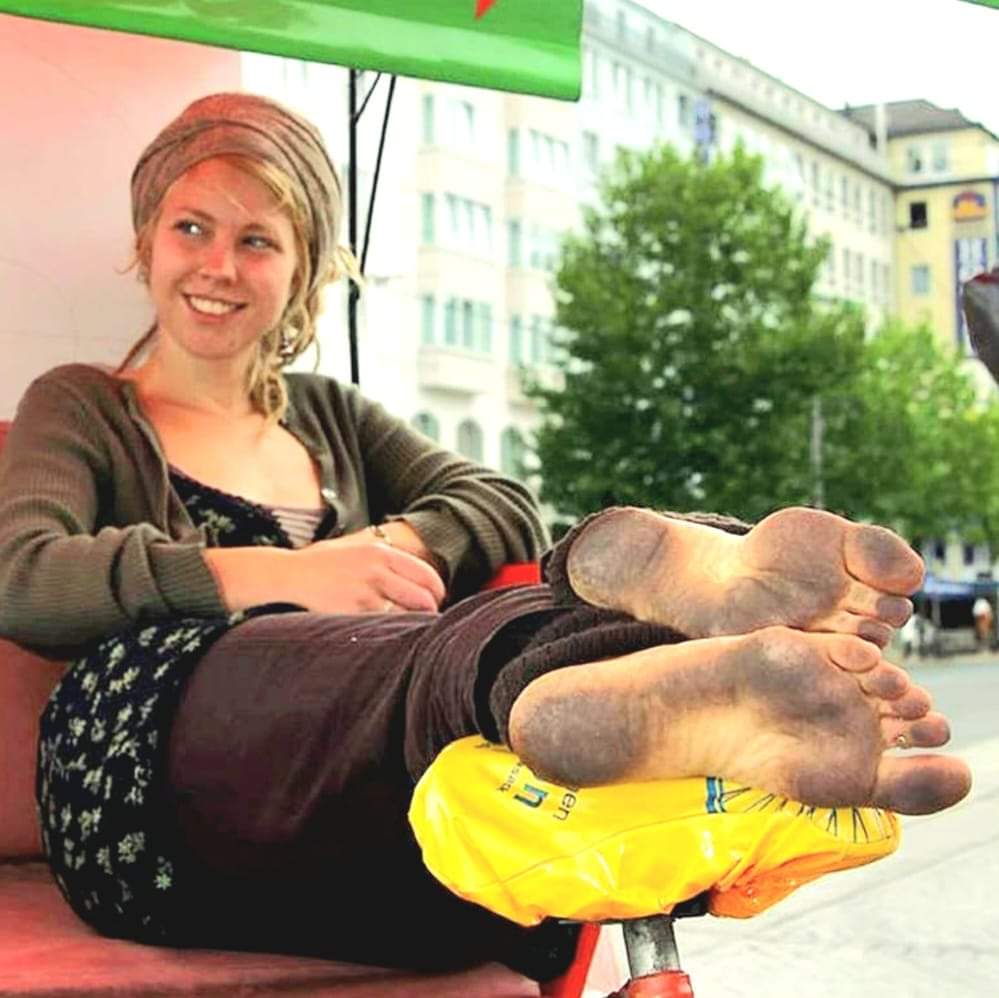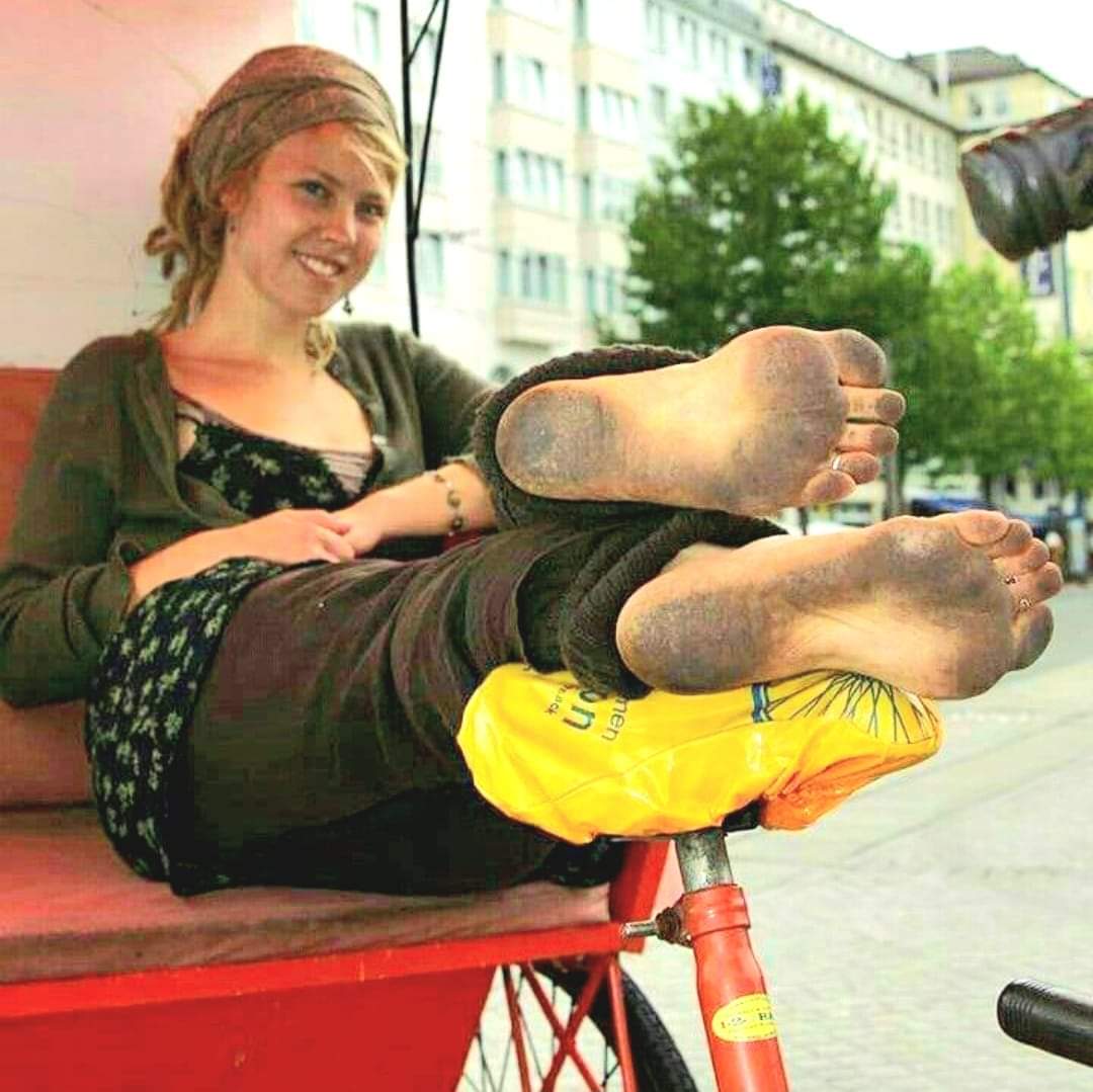 Босоногая девушка с грязными подошвами