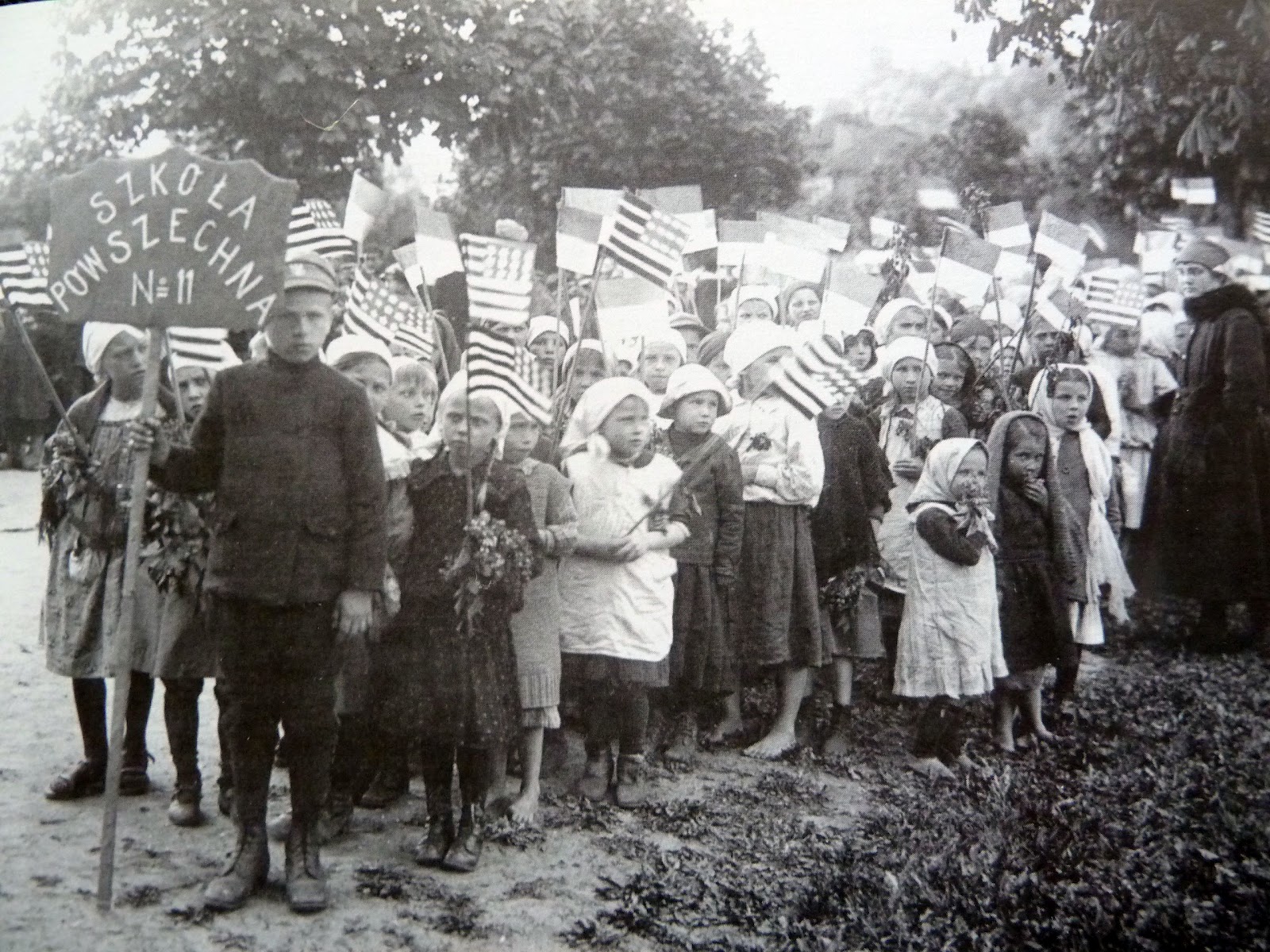 Дети из общей школы N11, многие босиком, приготовились к параду в честь американского